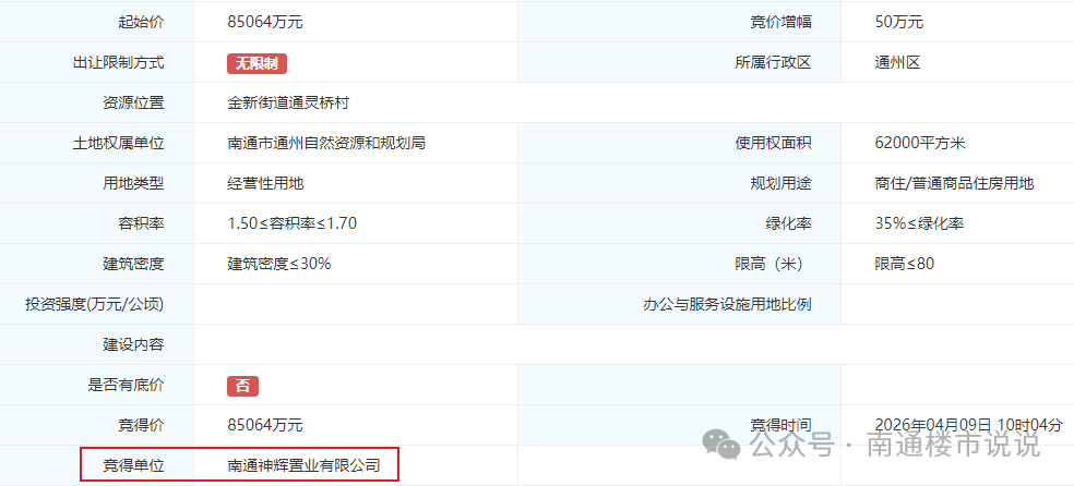 • 南通93亩商住用地!刚刚,本土国企8.5亿拿下!